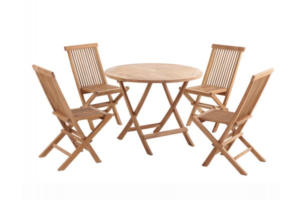 Teak Cafesæt i kvalitets kerneteak. Et perfekt sæt til altanen da både bord og stole kan slåes sammen.Â